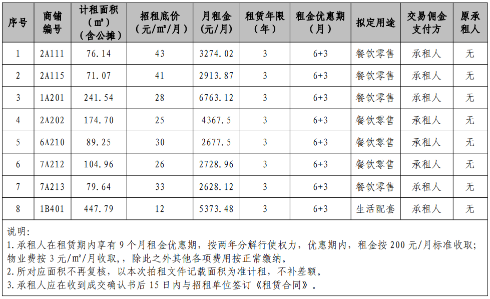 4.資產(chǎn)明細(xì):此次招租共計(jì)8處資產(chǎn):三明市沙縣區(qū)康養(yǎng)城商業(yè)廣場C11地塊B1幢商鋪7間,C12地塊G1棟商鋪1間;